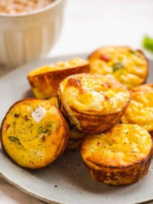 Simplify your breakfast with these savory ricotta cheese egg bites! They're supremely fluffy with chopped pepper and onions throughout (just like Starbucks) and baked to perfection in the oven with a muffin tin. Whip up this recipe before your week and enjoy an easy quick breakfast all week long!