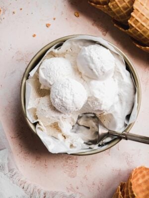 You're going to want to add a scoop of this vegan ice cream to anything and everything! It has a sweet vanilla flavor and is made dairy free with coconut milk. It pairs perfectly with a slice of pie or a cookie or in a bowl with your favorite toppings!