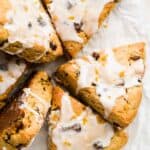 Storing : To store, make sure the glaze has hardened to prevent a big sticky mess. Place the scones in an air-tight container and store out on the counter for up to 5 days. You can also store the container in the fridge where they will keep for up to a week. When ready to enjoy, warm them up in the microwave for 8 seconds.